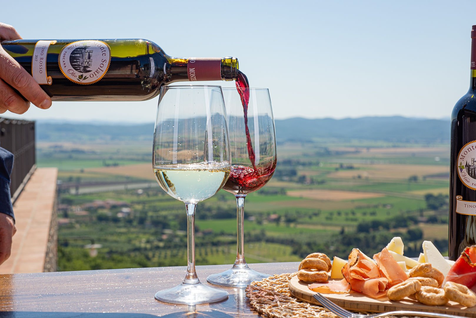 För dig som älskat bra röda viner erbjuder Toscana massor av bra vin. Det klassiska vinet gjort på druvan Sangiovese från t ex Chianti och Montalcino. Men sedan 70-talet erbjuder Toscana även riktigt bra Bordeaux blandningar, de s k Supertoscanarna, som görs på typiska Bordeauxdruvor som till exempel Cabernet Franc, Cabernet Sauvignon, Merlot, Petit Verdot.