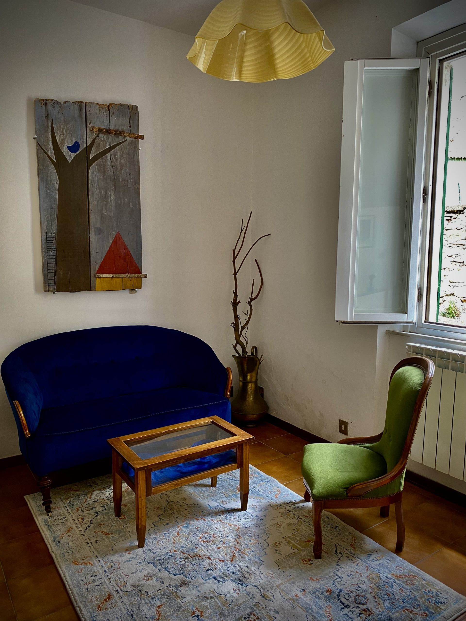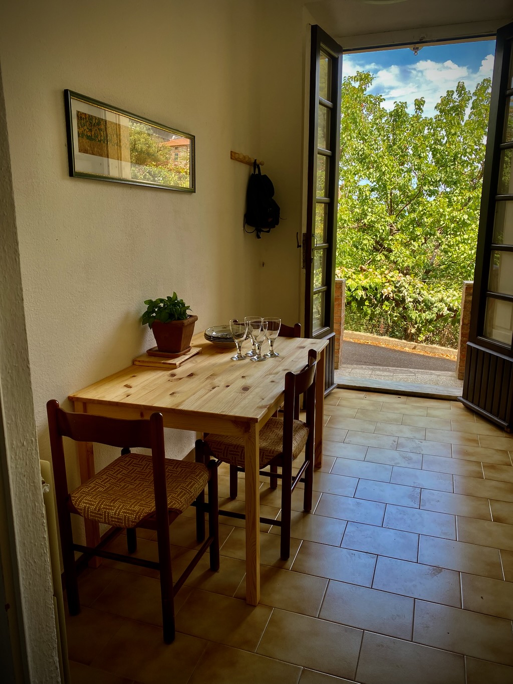 Våra lägenheter ligger i en egen fastighet med en gemensam trädgård. Med svalkande skugga från de omgivande träden. Utsikten över de toscanska kullarna är milslång. Den nedre lägenheten är lite svalare på sommaren. På vintern har bägge lägenheterna uppvärmning genom vattenburna radiatorer.