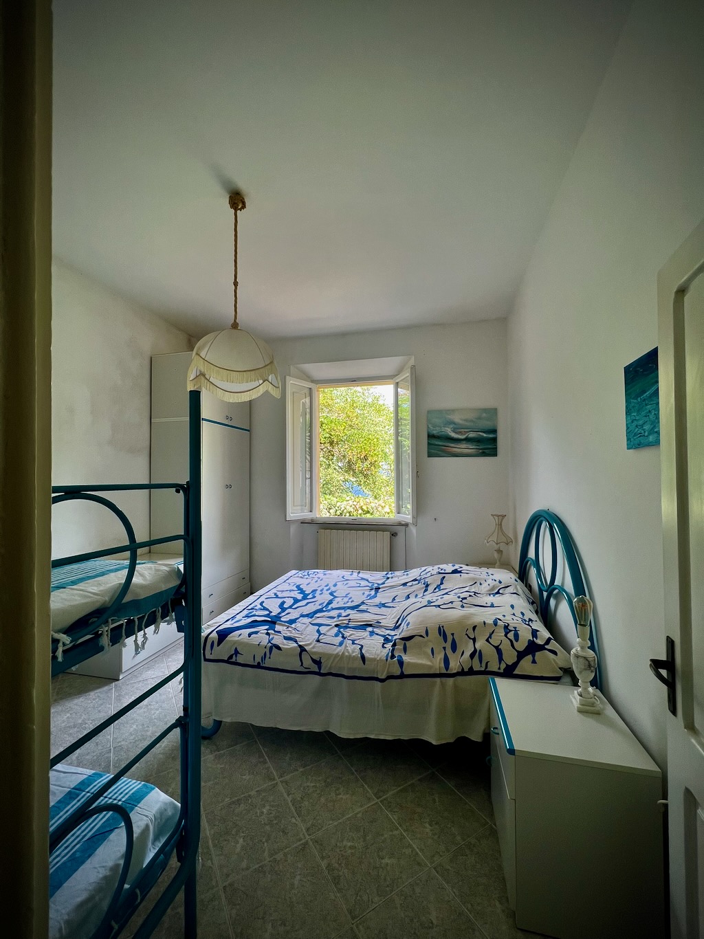 Lägenheten har tre rum, kök samt två badrum, var av ett är helt nytt. Här har du även en tvättmaskin. Ett sovrum med en dubbelsäng och en våningssäng, Det stora vardagsrummet/sovrummet har en bäddsoffa för två personer samt en extra säng. I anslutning till köket har du en matplats för fyra personer. Du har direktutgång till trädgården.